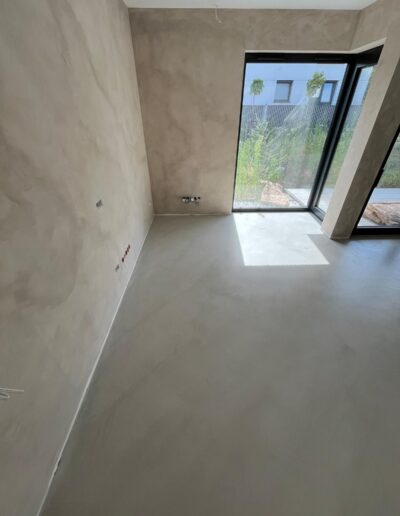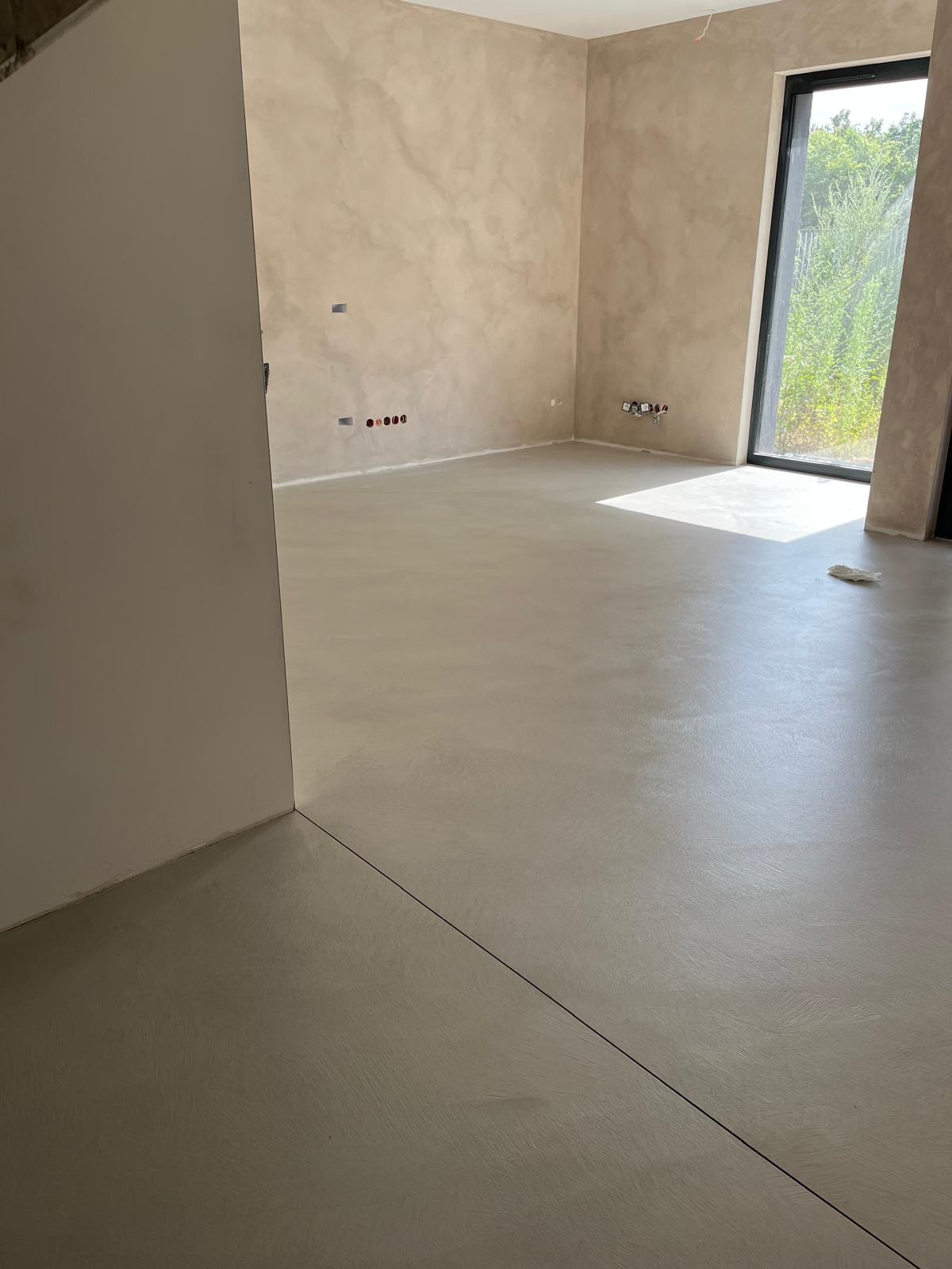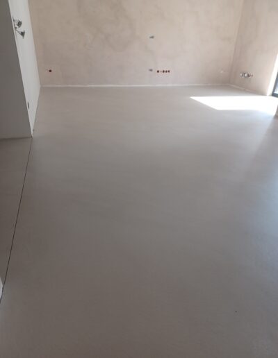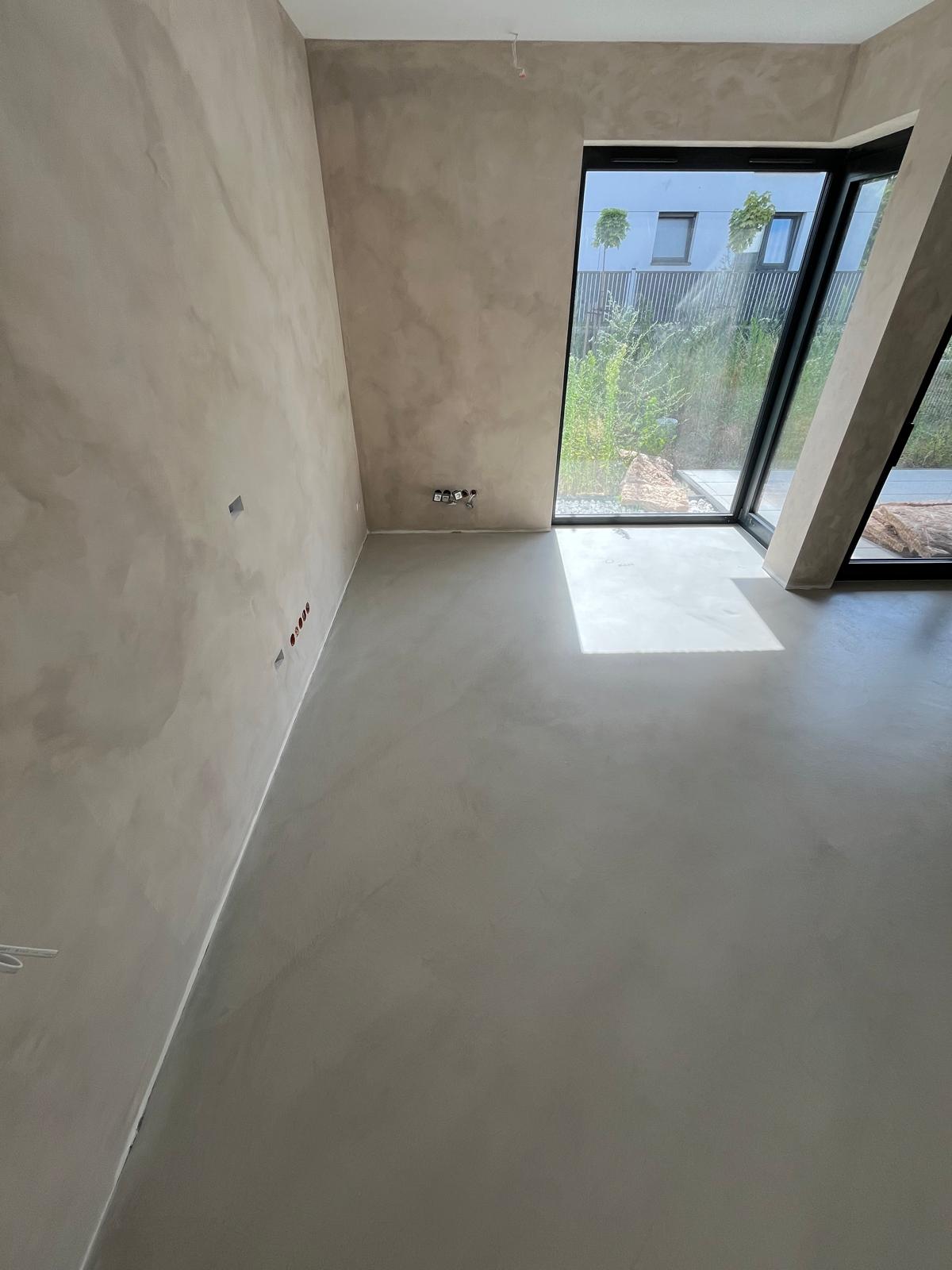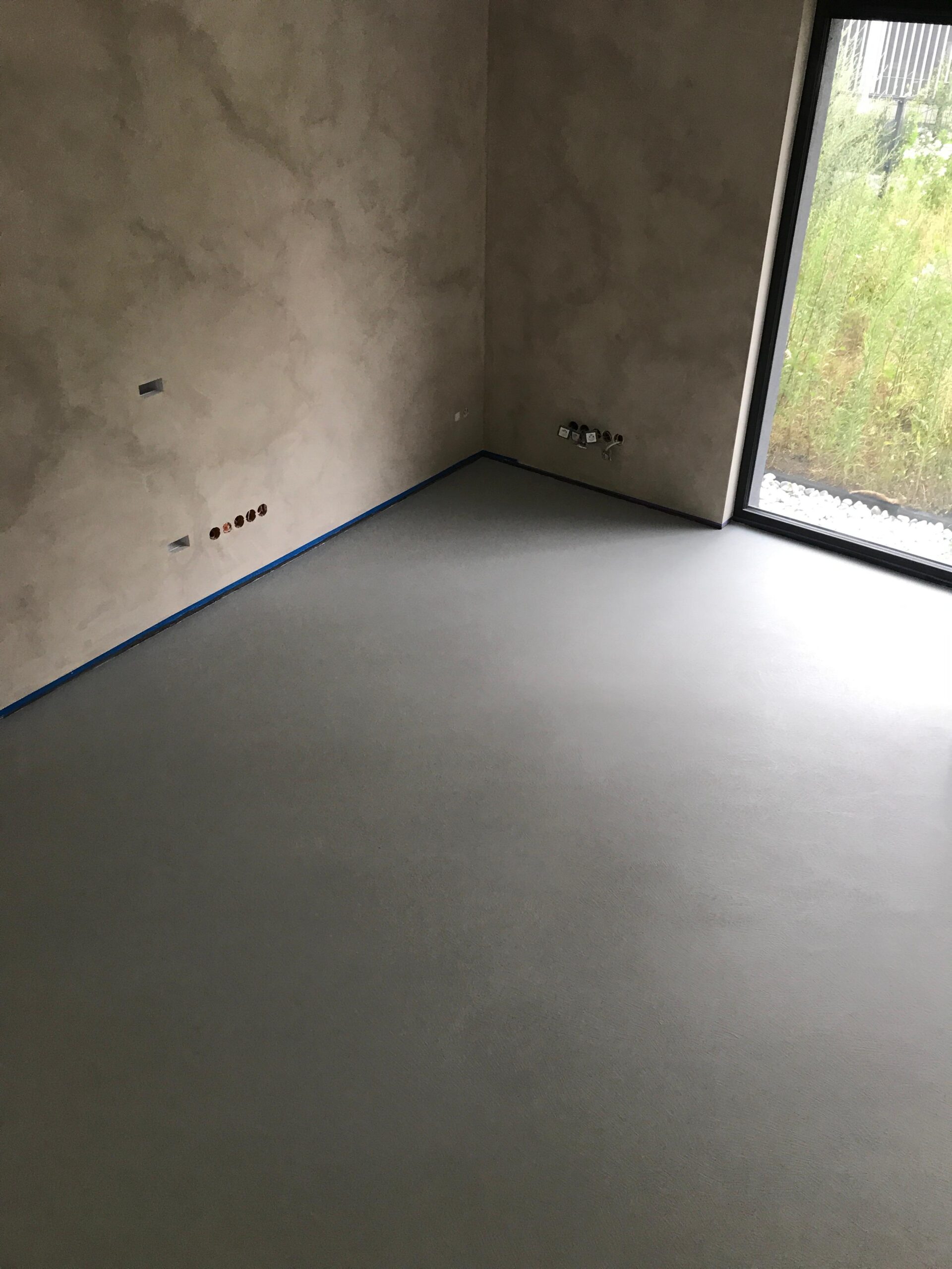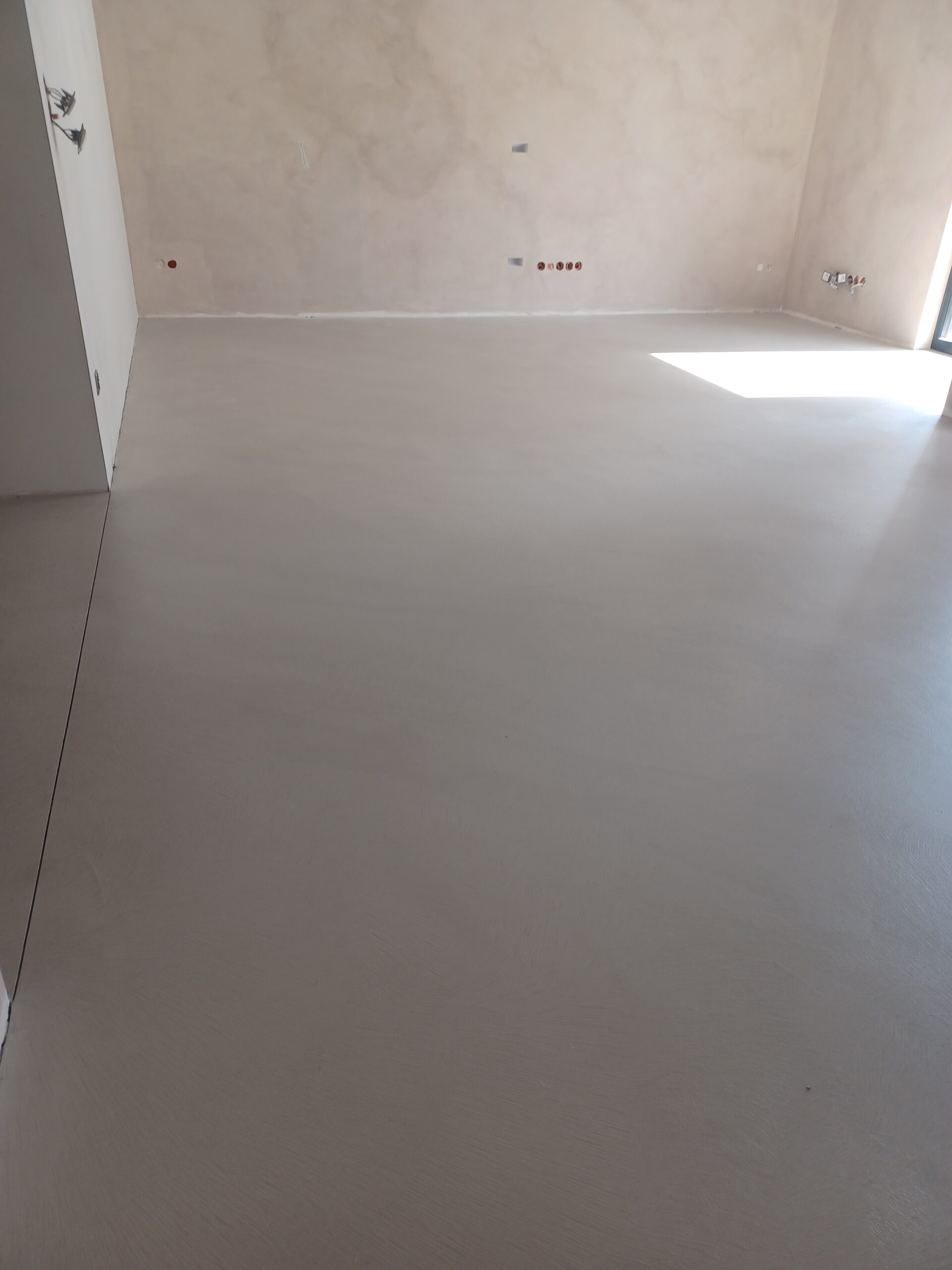 Wybrany przez klienta kolor Warm Cement dodał wnętrzom ciepła i nowoczesnego charakteru. Efekt? Gładka, bezspoinowa podłoga, która optycznie powiększyła przestrzeń i jest niezwykle łatwa w utrzymaniu czystości.