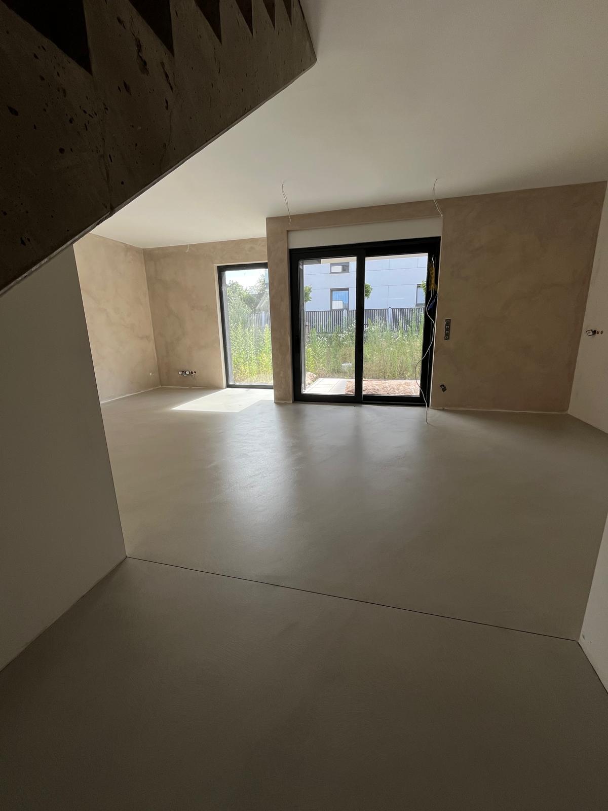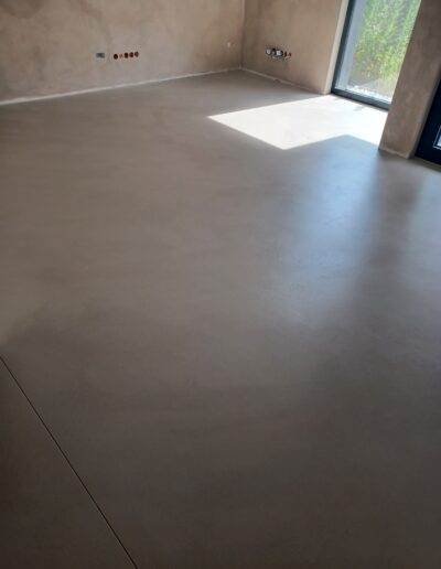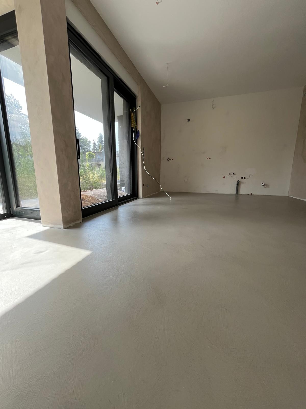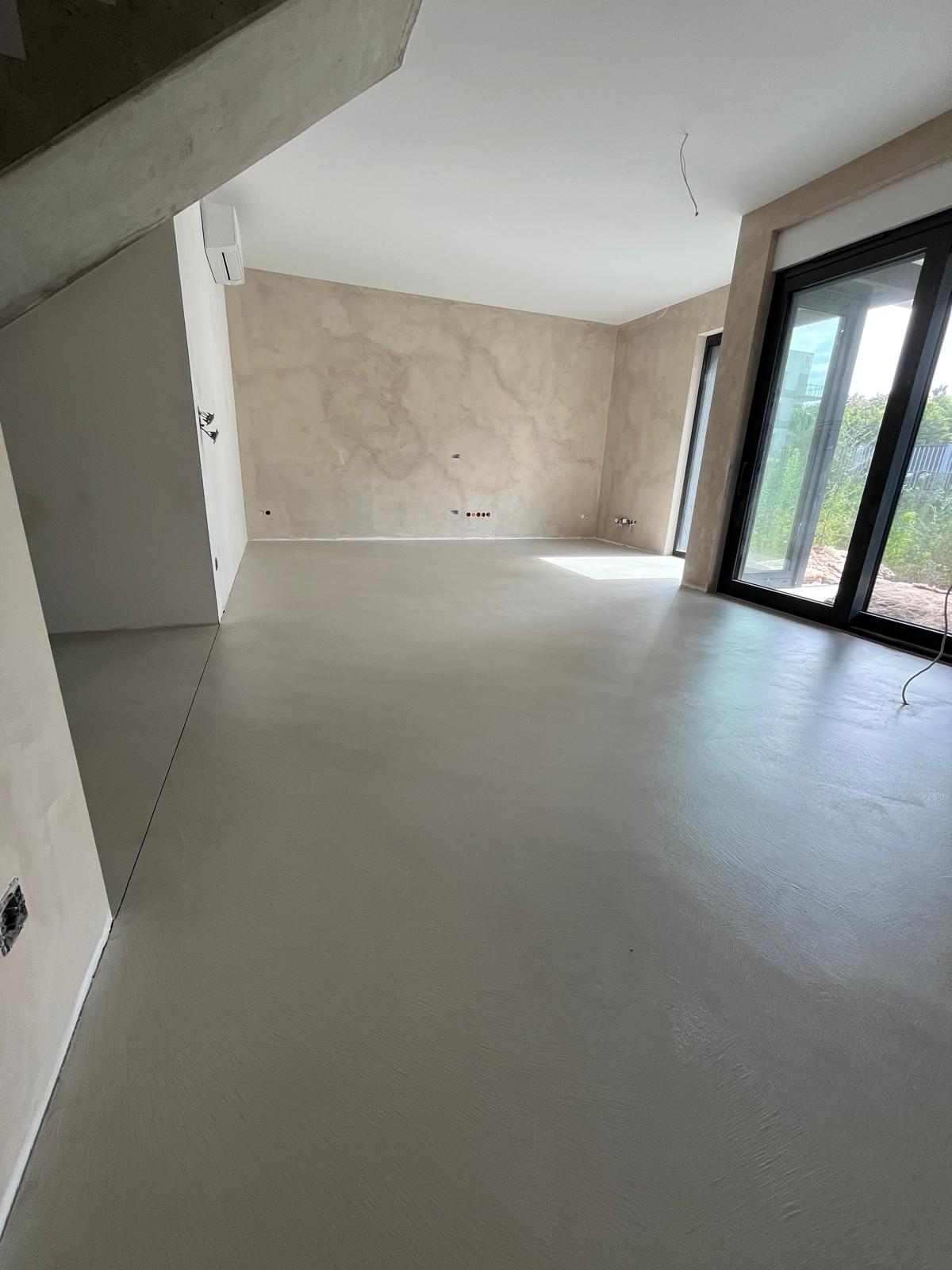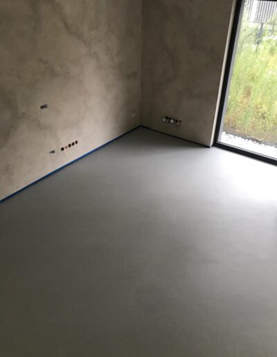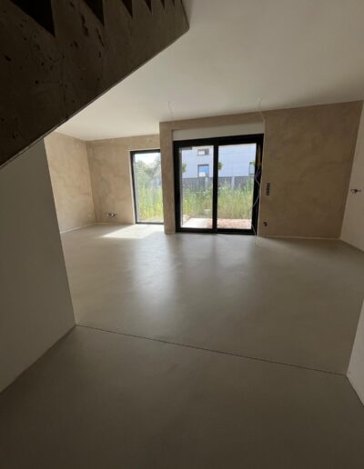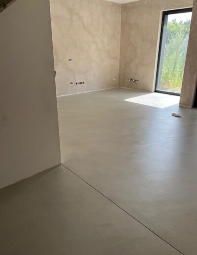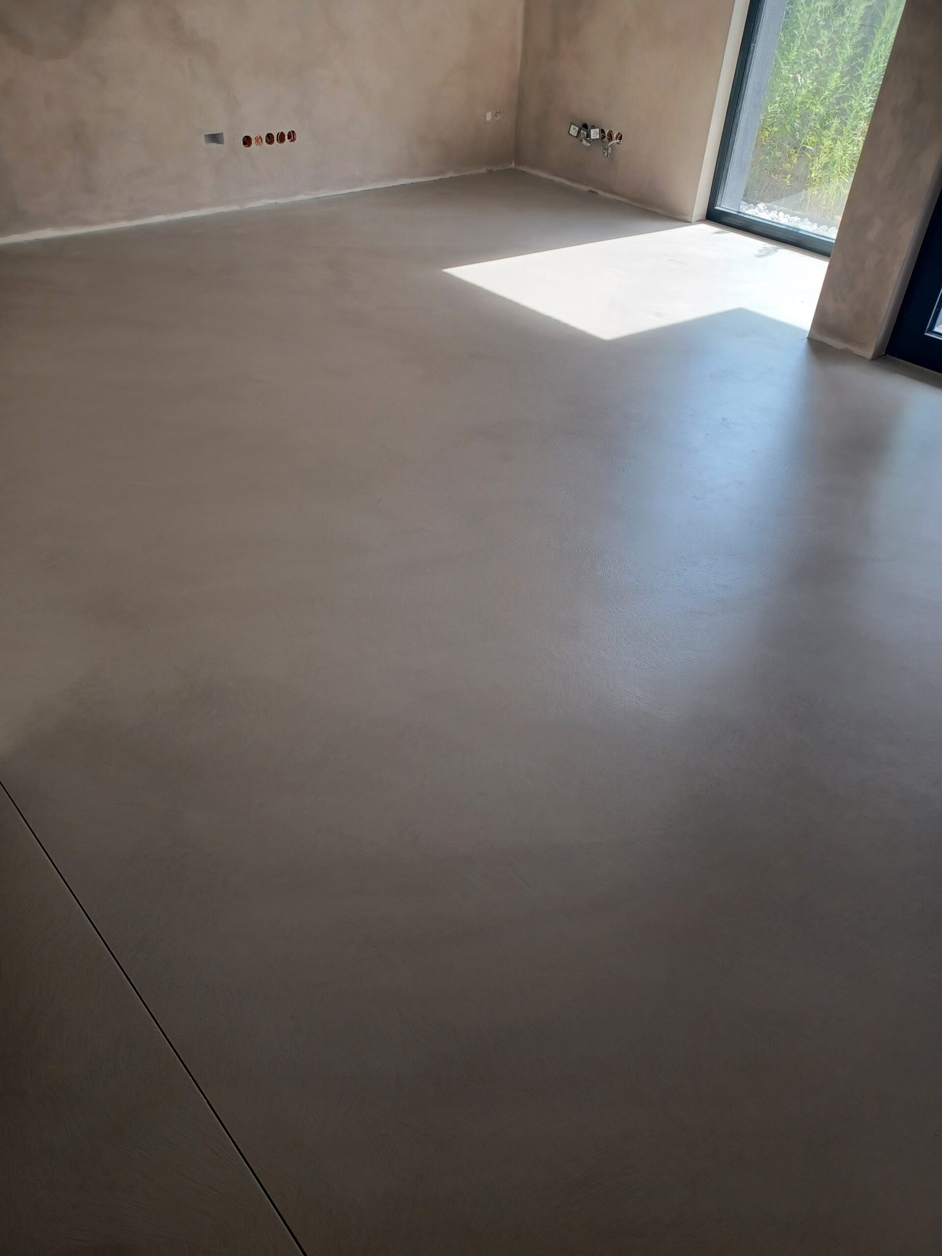 Wybrany przez klienta kolor Warm Cement dodał wnętrzom ciepła i nowoczesnego charakteru. Efekt? Gładka, bezspoinowa podłoga, która optycznie powiększyła przestrzeń i jest niezwykle łatwa w utrzymaniu czystości.