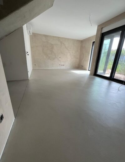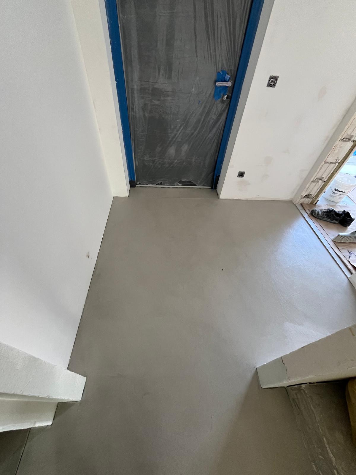 Z przyjemnością prezentujemy naszą najnowszą realizację – posadzkę z mikrocementu w domu jednorodzinnym. Nasze ekipy pracowały na parterze, w strefie dziennej, wiatrołapie i łazience, tworząc spójną i elegancką przestrzeń.