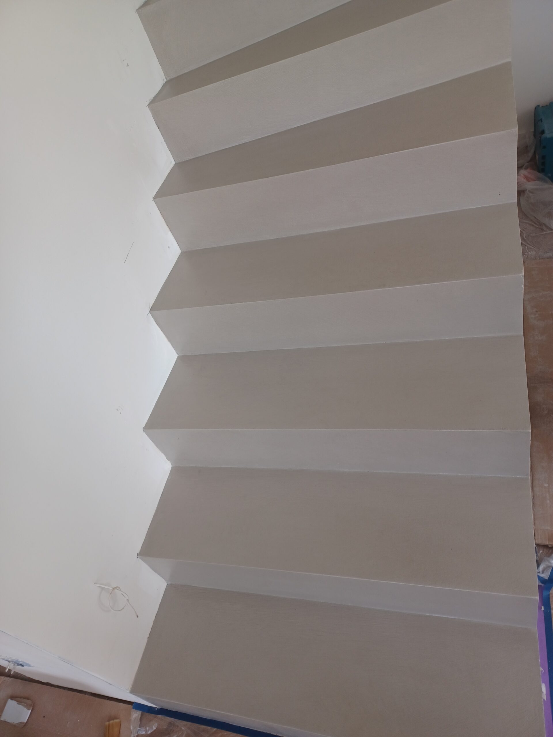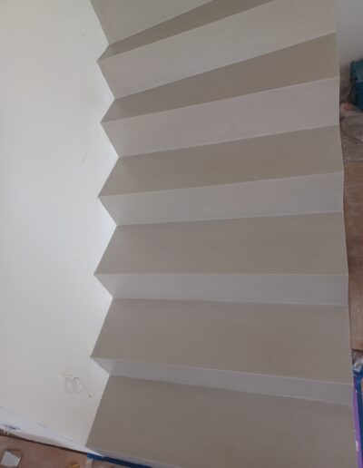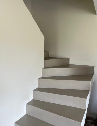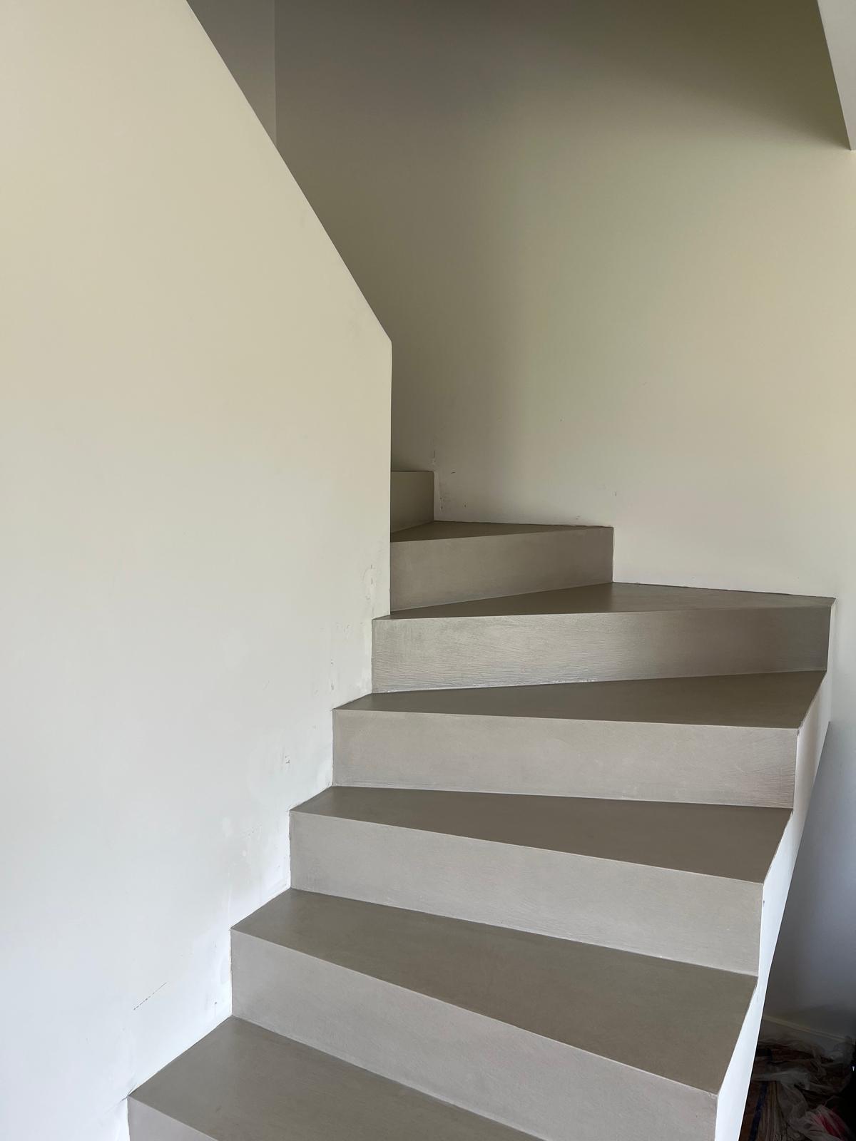 Nasza praca objęła kompleksową reprofilację schodów, dzięki czemu nadałyśmy im idealny kształt i solidną bazę. Następnie całe stopnie pokryte zostały mikrocementem w ciepłym i uniwersalnym kolorze Warm Cement. 🌡️